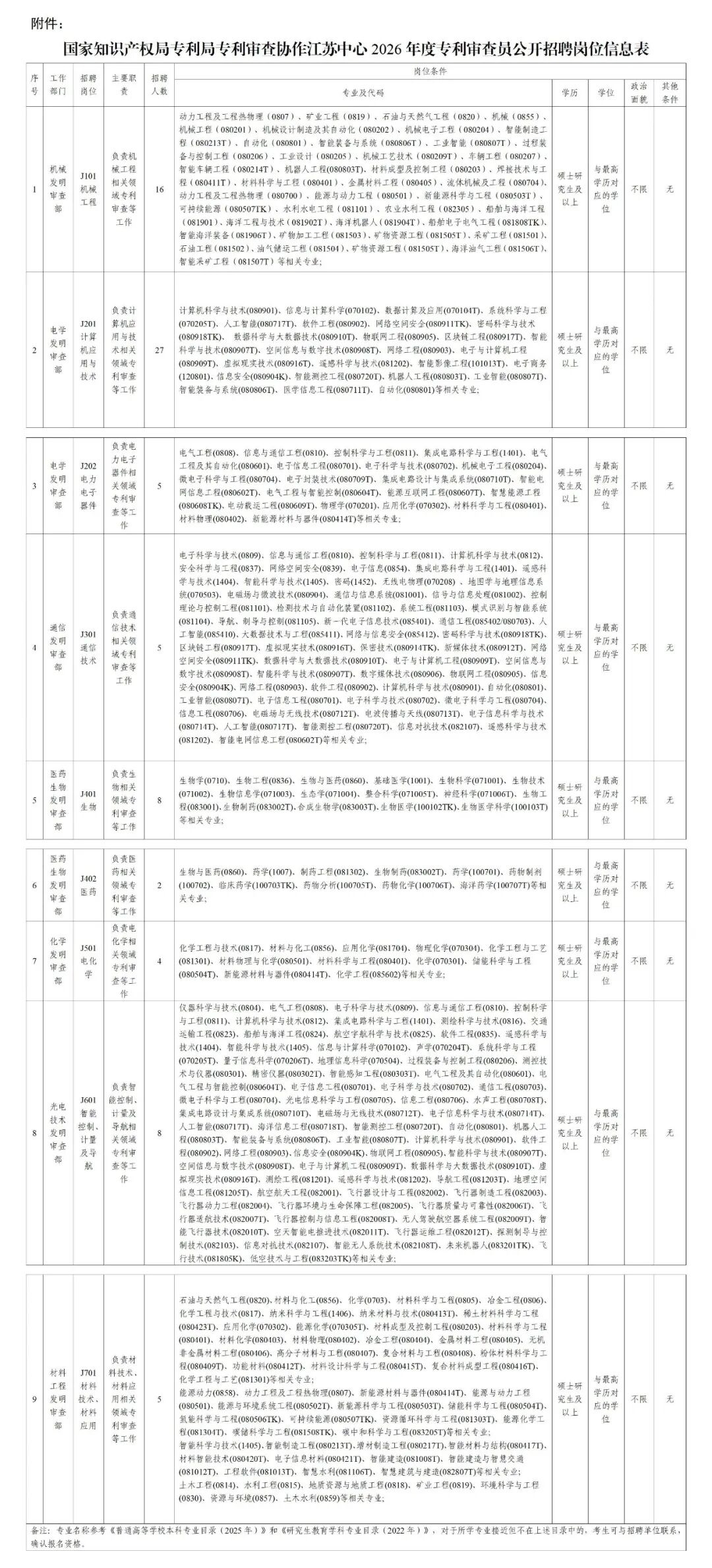 - 80人!2026年度 知識產(chǎn)權(quán)局專利局專利審查協(xié)作江蘇中心專利審查員公開招聘公告