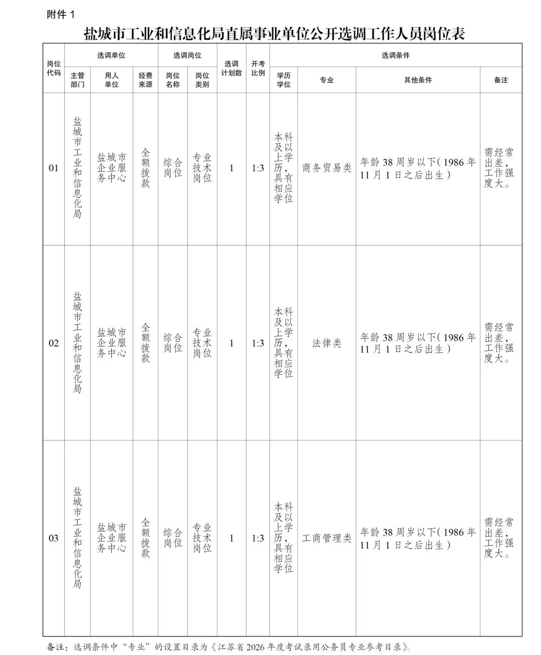 - 3人!選調(diào)!鹽城市工業(yè)和信息化局直屬事業(yè)單位2025年公開選調(diào)工作人員公告