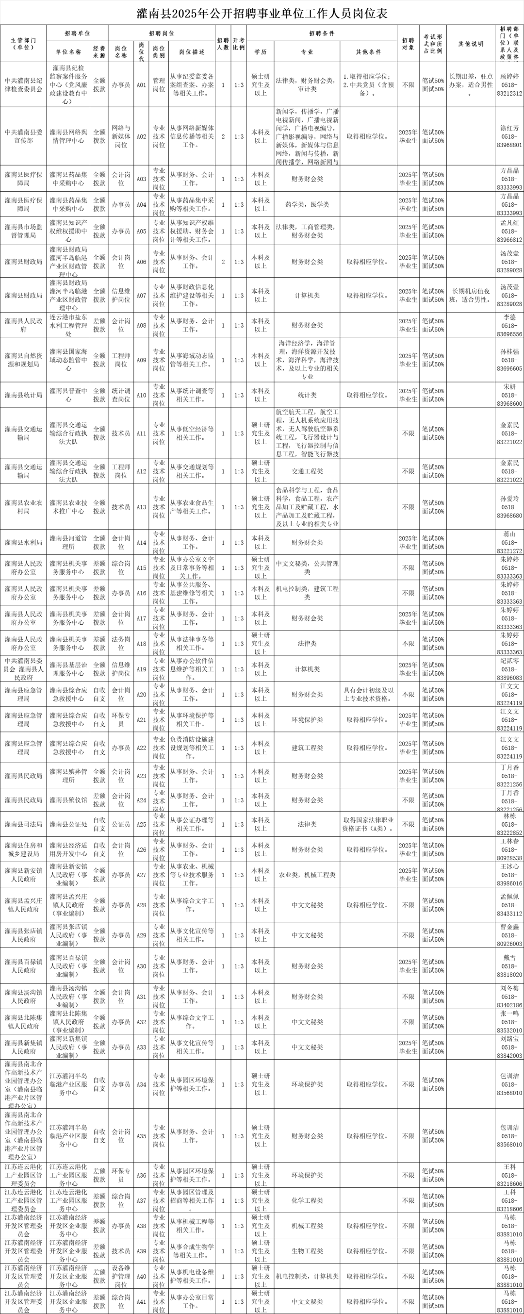 - 灌南縣2025年公開招聘事業(yè)單位工作人員公告