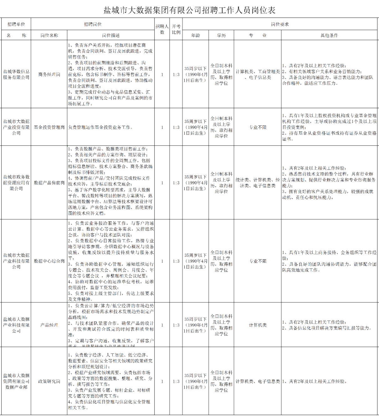 鹽城市大數(shù)據集團有限公司公開招聘公告