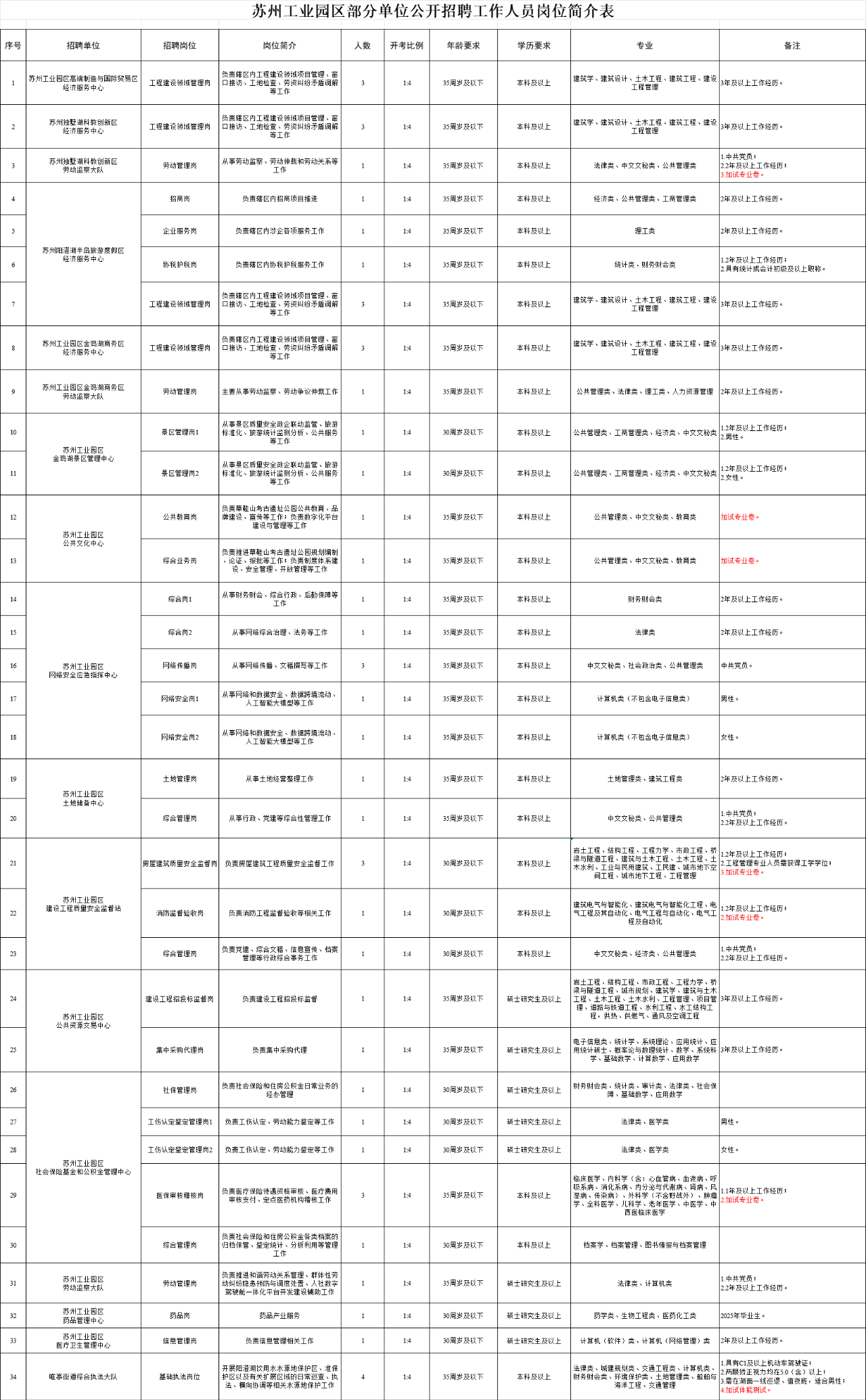 - 51人!正式工!蘇州工業(yè)園區(qū)部分單位公開招聘工作人員公告