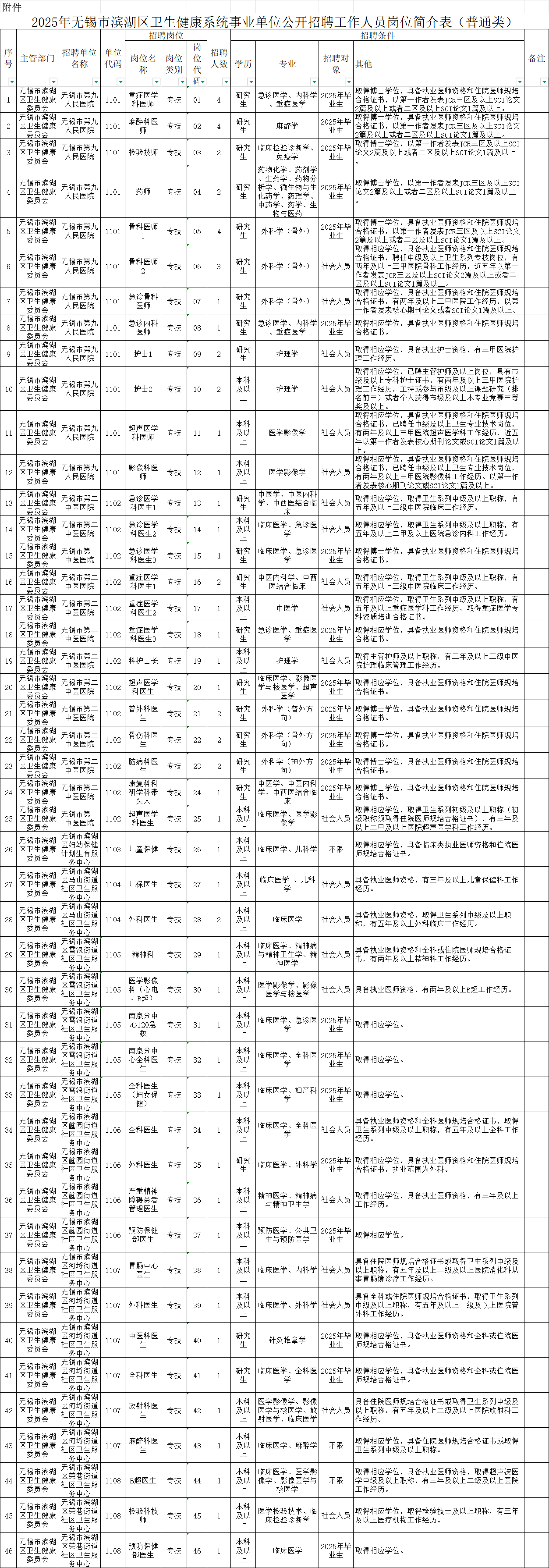 - 66人!醫(yī)療編!不限戶籍!2025年無錫市濱湖區(qū)衛(wèi)生健康系統(tǒng)事業(yè)單位公開招聘工作人員公告(普通類)