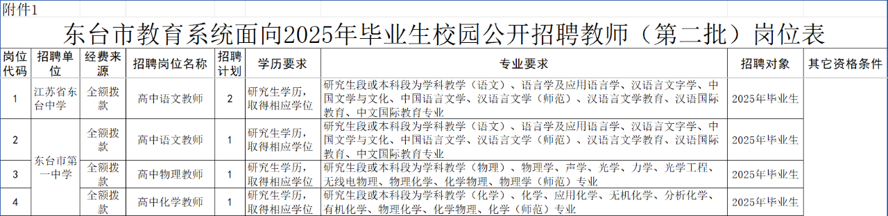 東臺市教育系統(tǒng)面向2025年畢業(yè)生