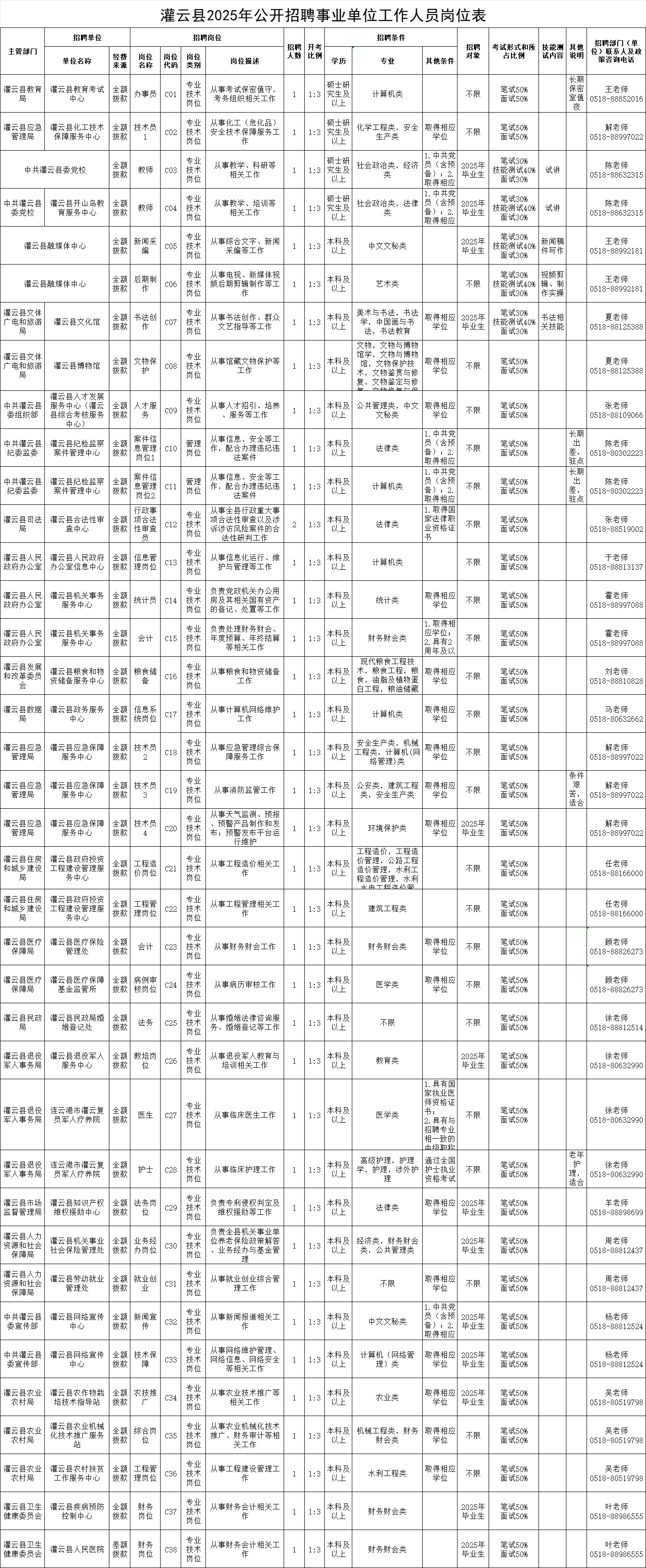 灌云縣2025年公開招聘事業(yè)單位工作人員公告