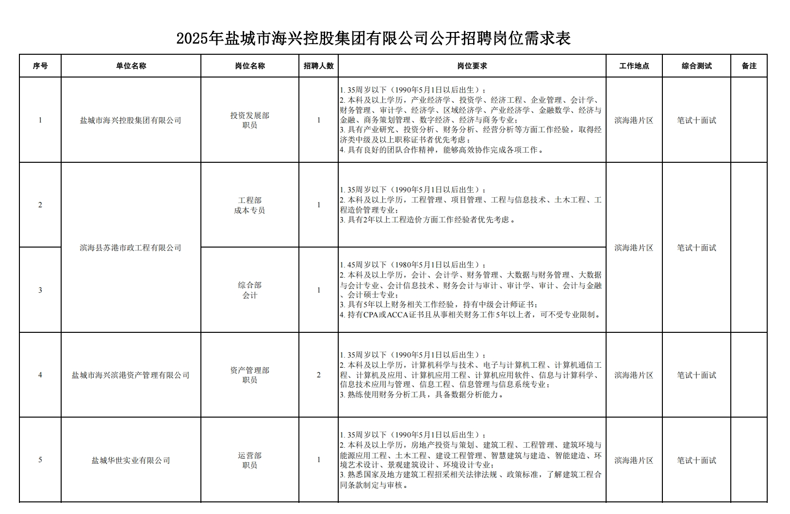 - 13人!國企!鹽城市海興控股集團(tuán)有限公司招聘公告