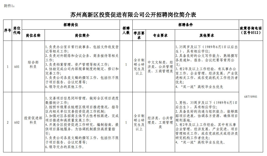 - 3人!國(guó)企!蘇州高新區(qū)投資促進(jìn)有限公司公開招聘公告