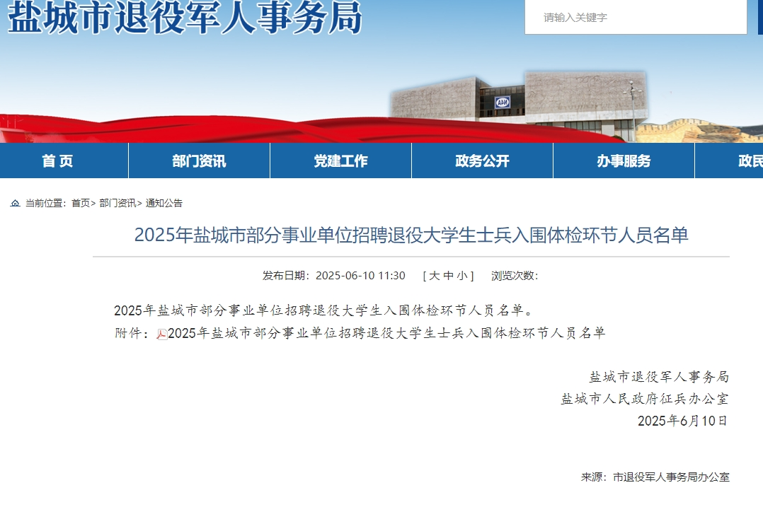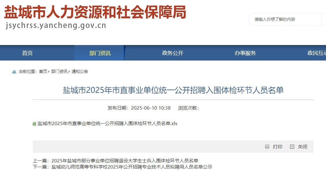 - 市直已出!鹽城市2025年市直事業(yè)單位 公開(kāi)招聘入圍體檢環(huán)節(jié)人員名單