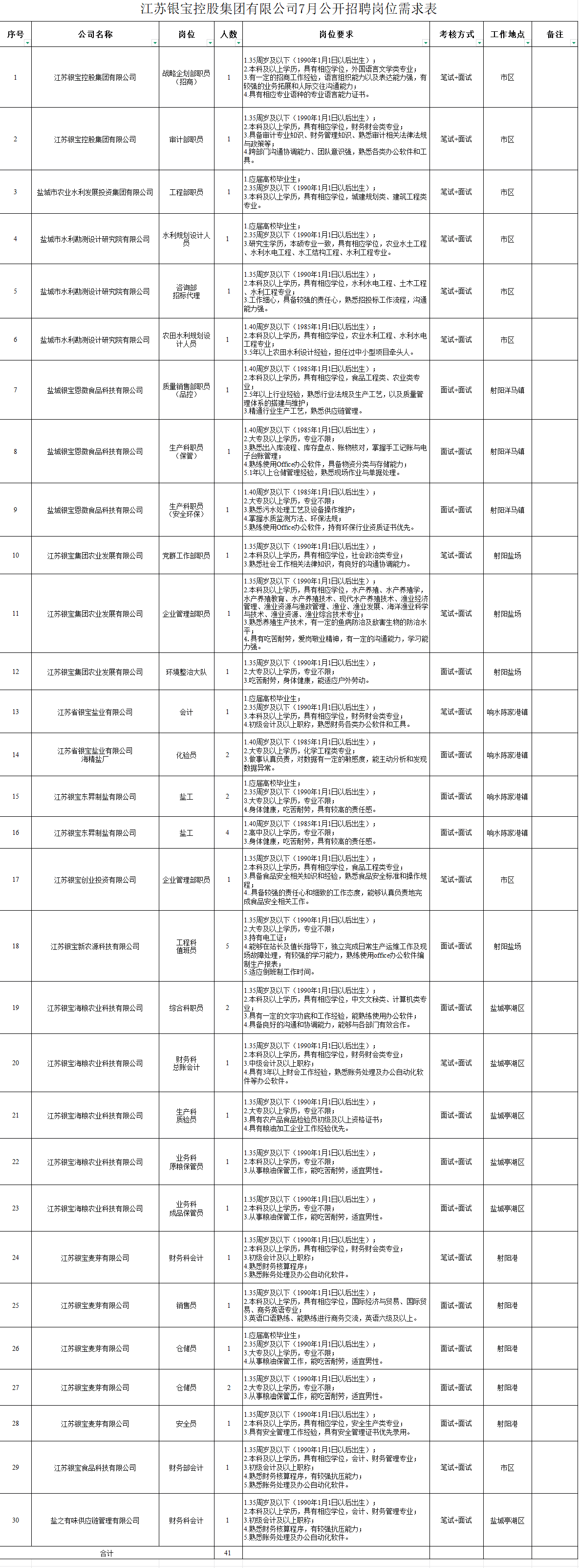 - 41人!國企!江蘇銀寶控股集團有限公司公開招聘公告
