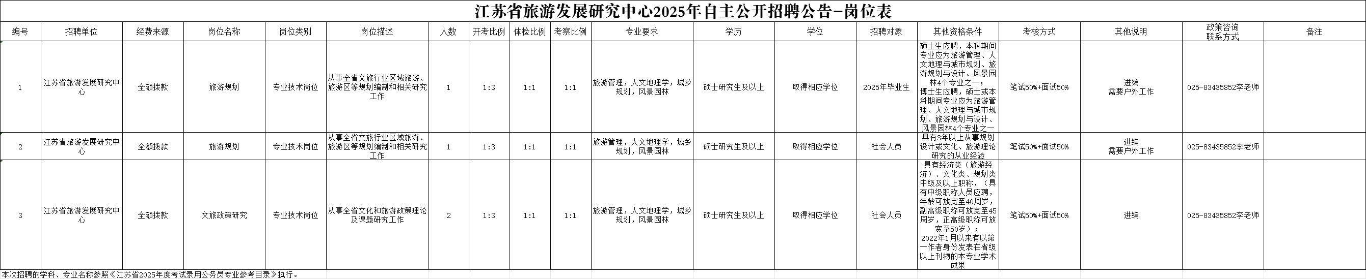 - 4人!事業(yè)編!江蘇省旅游發(fā)展研究中心2025年自主公開招聘公告