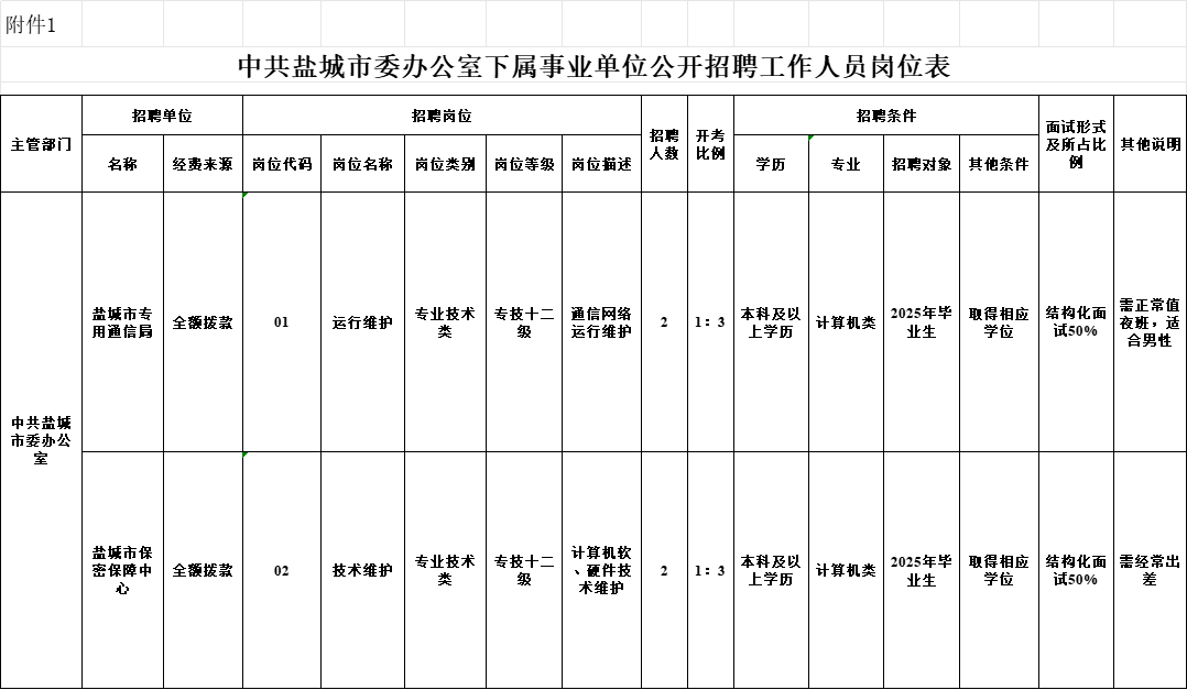 - 4人!事業(yè)編! 鹽城市委辦公室下屬事業(yè)單位2025年公開招聘工作人員的公告