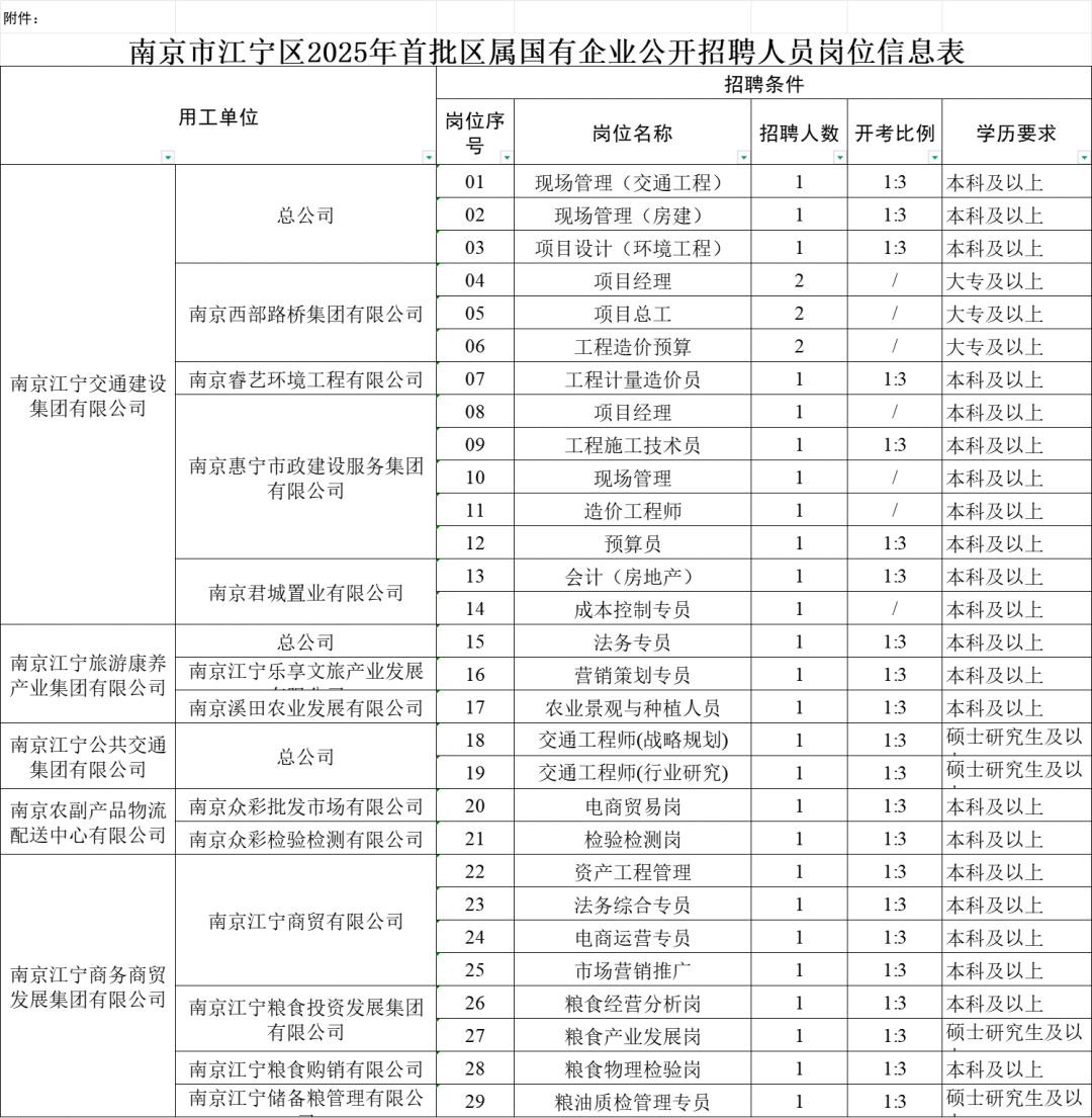 - 32人!國企!南京市江寧區(qū)2025年首批區(qū)屬國有企業(yè)公開招聘人員公告!