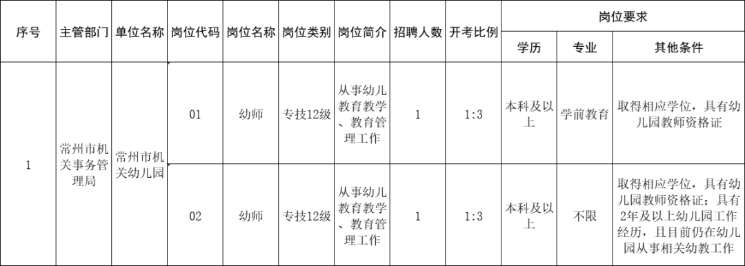 - 2人!有編!2025年江蘇常州市機(jī)關(guān)事務(wù)管理局下屬事業(yè)單位公開招聘幼兒教師公告!