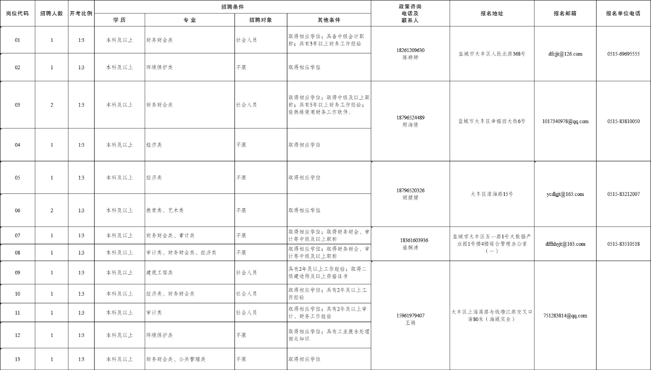 為及時補充區(qū)屬國有企業(yè)工作人員,優(yōu)化人員結(jié)構(gòu),根據(jù)《鹽城市大豐區(qū)區(qū)屬國有企業(yè)員工招聘與流動管理辦法》(大國資辦發(fā)〔2021〕50號)精神,經(jīng)研究,決定面向社會 公開招聘15名工作人員,F(xiàn)將有關(guān)事項公告如下: