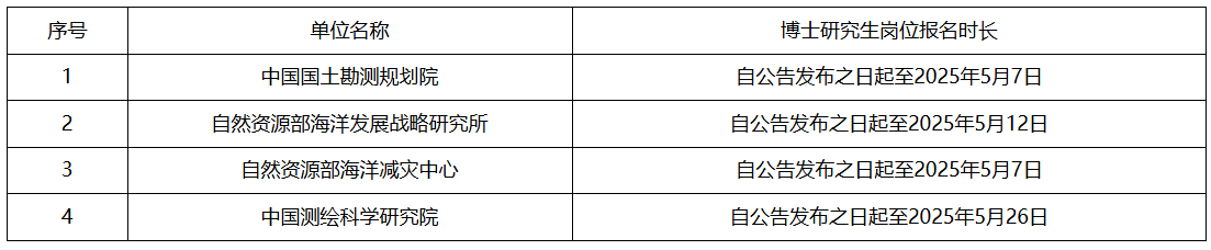 不參加 筆試崗位(適用于不參加 筆試且不使用自然資源部所屬企事業(yè)單位公開招聘報名平臺的博士研究生崗位):