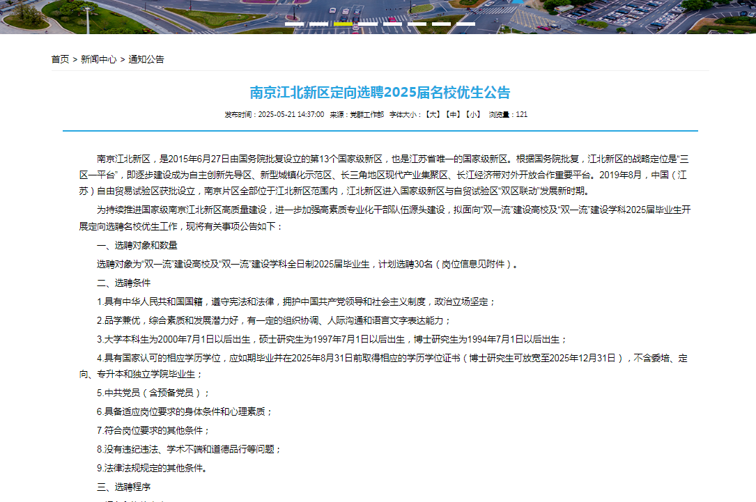 南京江北新區(qū)定向選聘2025屆名校優(yōu)生公告