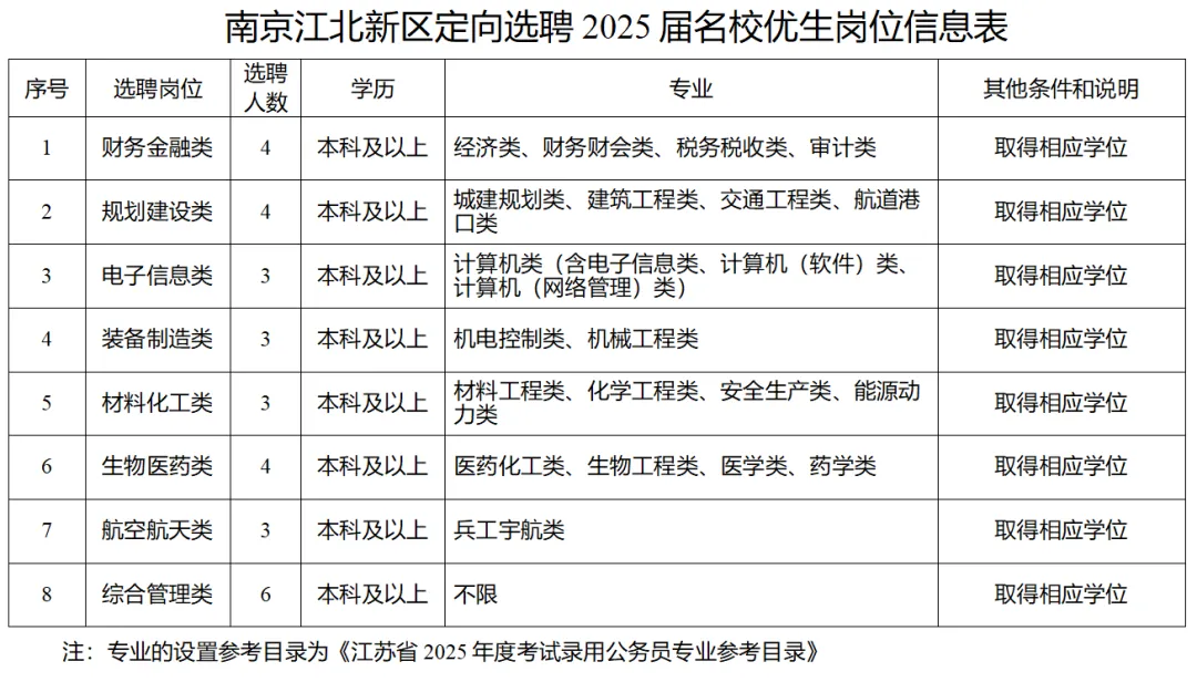 附件:南京江北新區(qū)定向選聘2025屆名校優(yōu)生崗位信息表