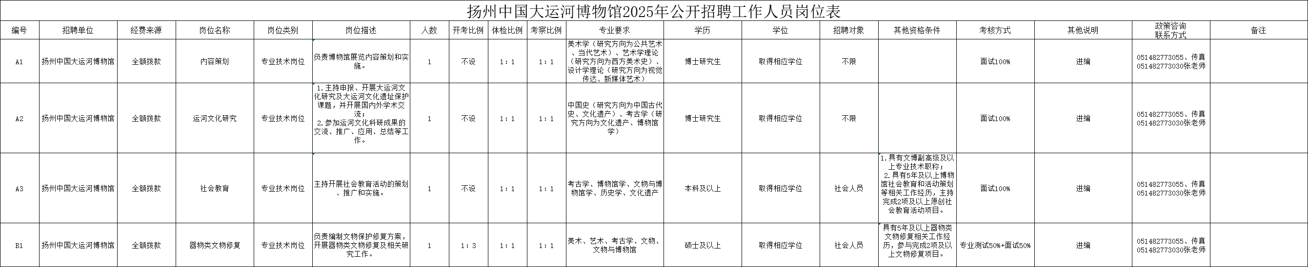 - 4人!事業(yè)編!揚(yáng)州中國(guó)大運(yùn)河博物館2025年公開(kāi)招聘工作人員公告