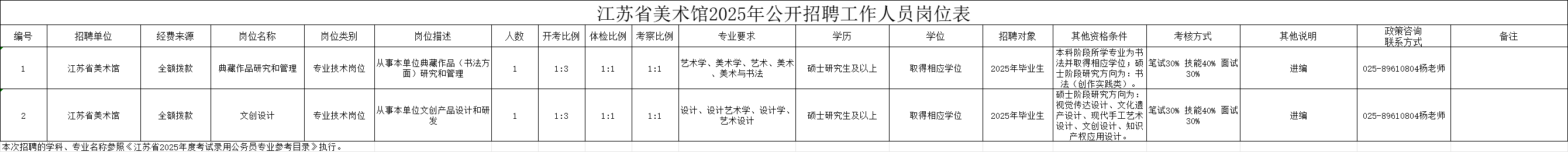 - 2人!事業(yè)編!江蘇省美術(shù)館2025年公開招聘工作人員公告