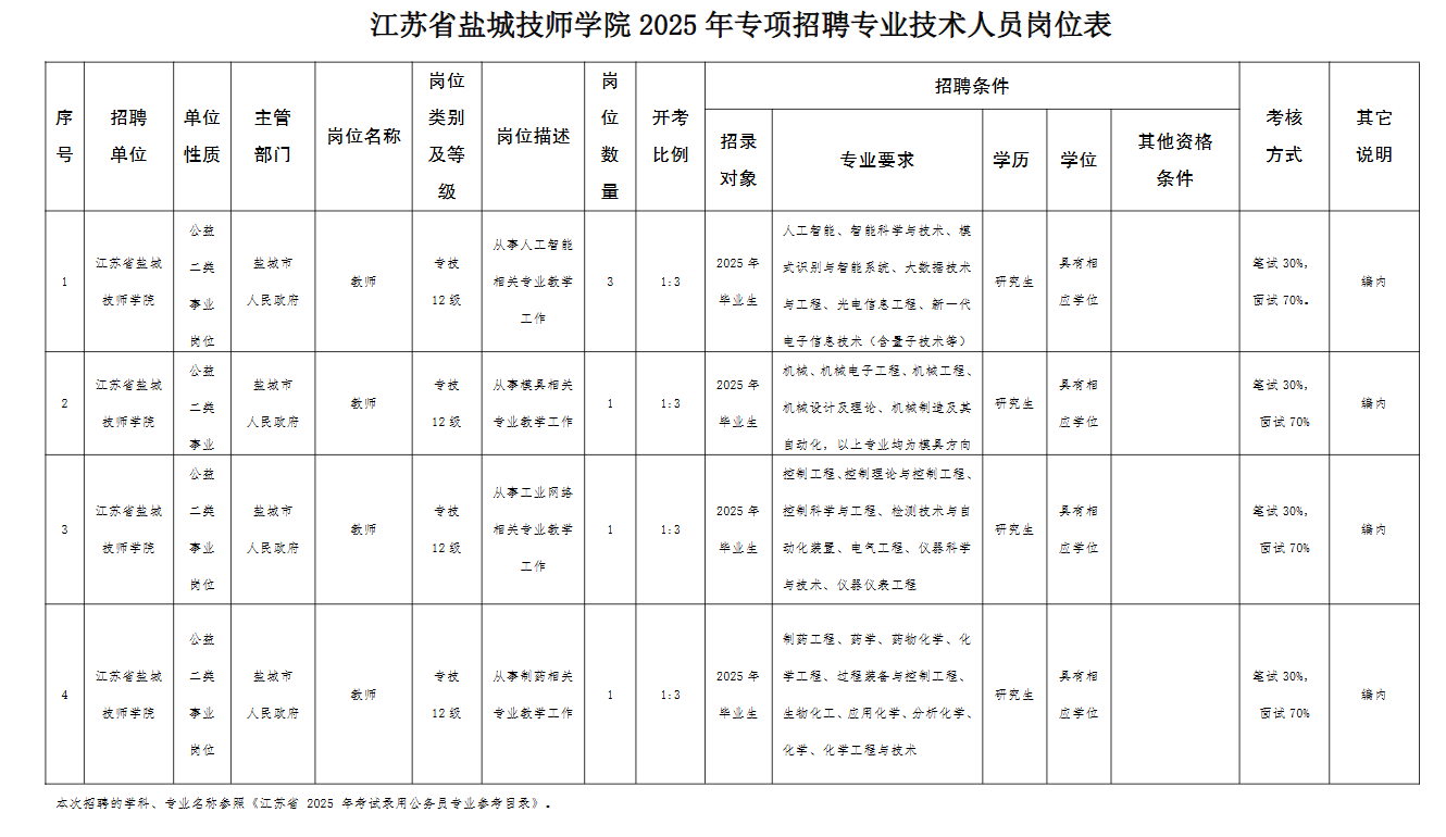 鹽城技師學(xué)院2025年專項(xiàng)招聘專業(yè)技術(shù)人員公告