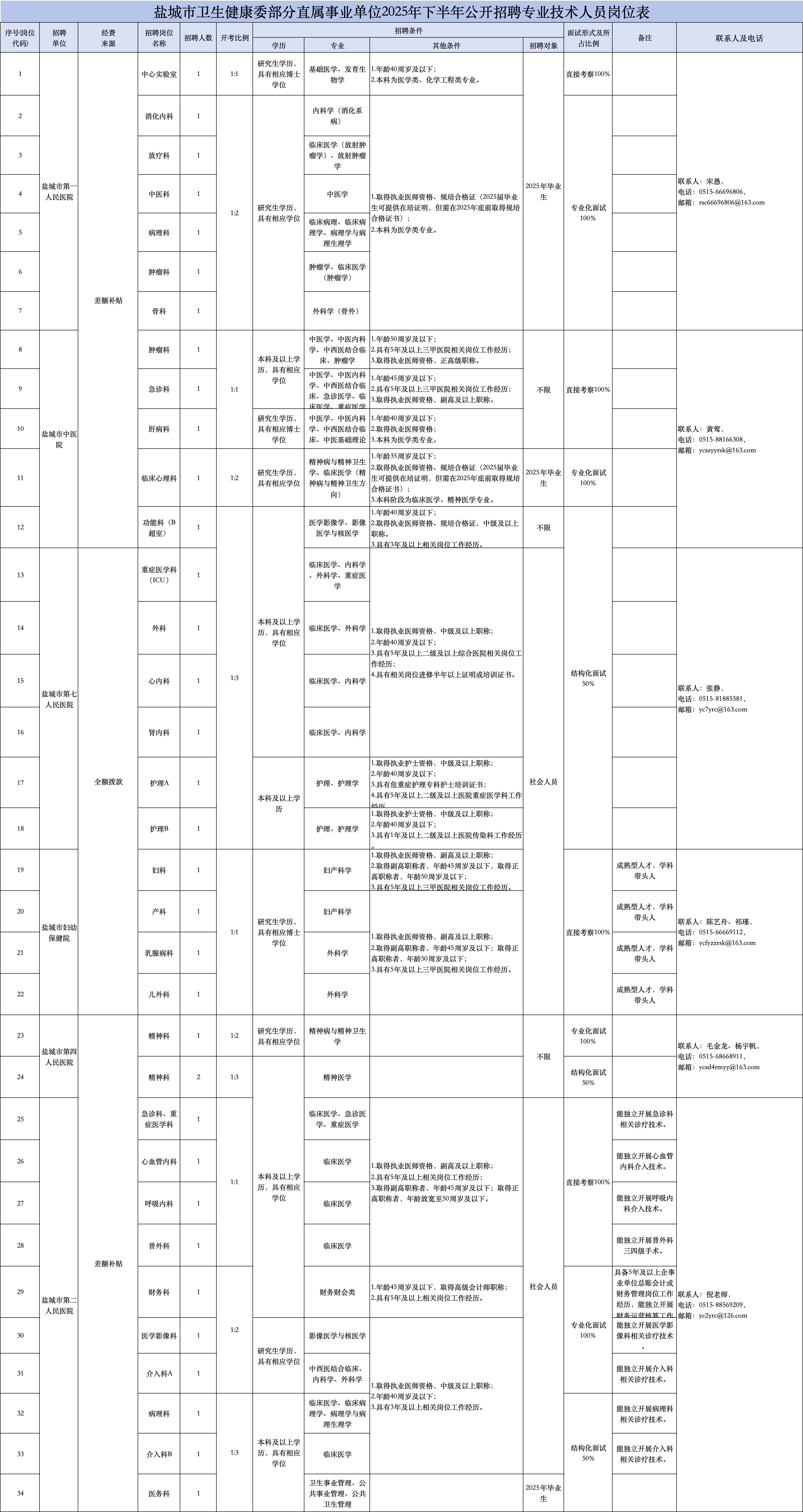 - 35人!衛(wèi)生編!鹽城市衛(wèi)生健康委部分直屬事業(yè)單位2025年下半年公開招聘專業(yè)技術(shù)人員公告