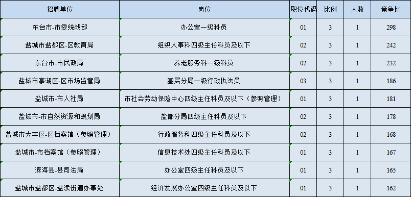 ①鹽都區(qū):招聘61人,報名成功3808人,平均競爭比約為62.4:1