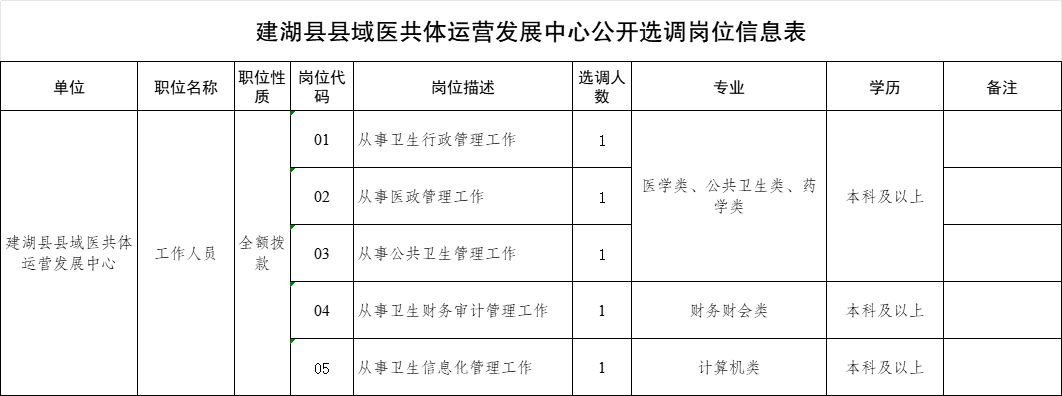 - 5人!建湖縣縣域醫(yī)共體運(yùn)營發(fā)展中心公開選調(diào)工作人員公告