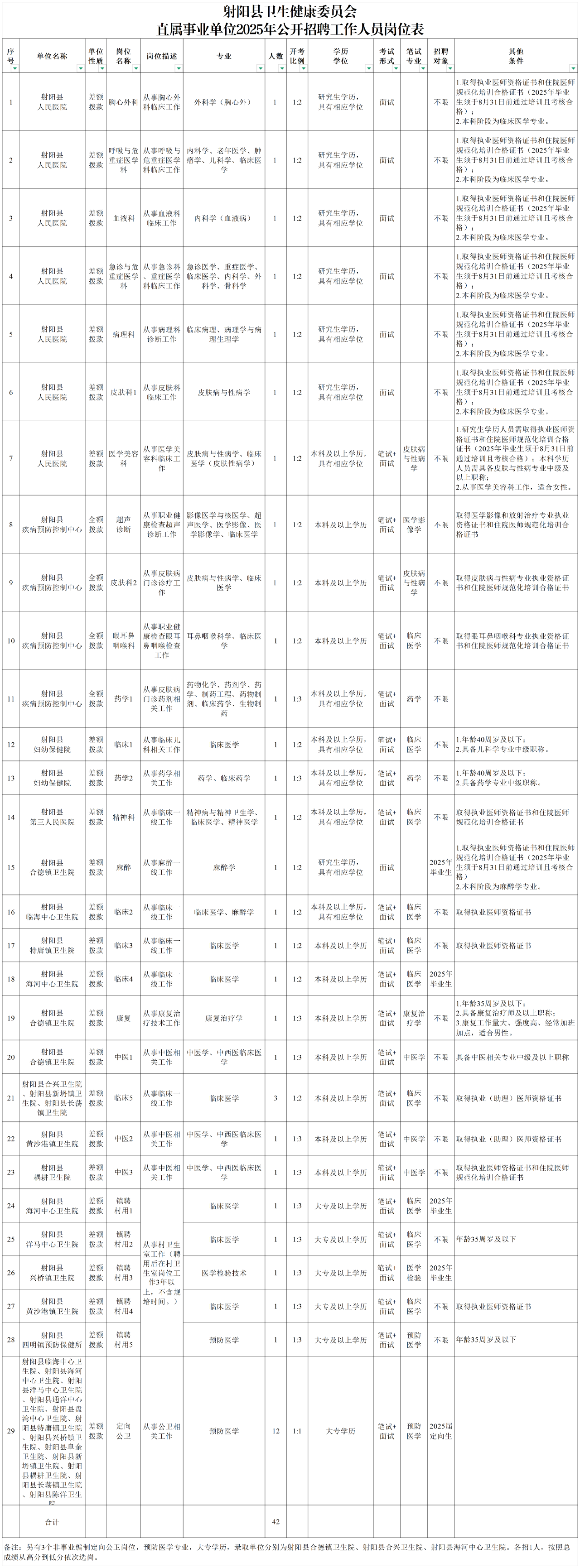 - 42人!醫(yī)療編!射陽縣衛(wèi)生健康委員會直屬事業(yè)單位2025年公開招聘工作人員公告
