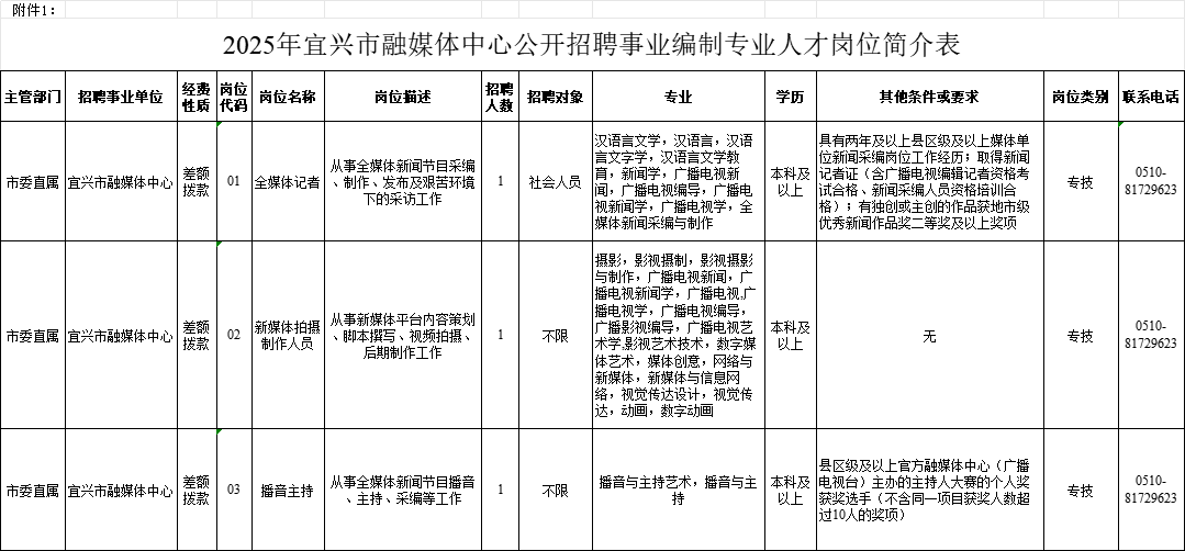 - 3人!事業(yè)編!2025年宜興市融媒體中心公開招聘專業(yè)人才公告
