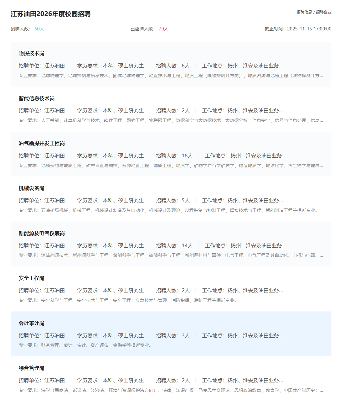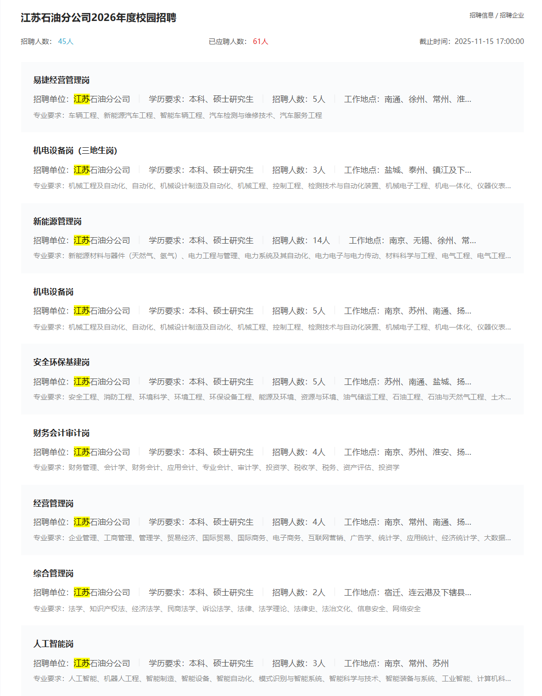 - 江蘇140人!中國石化2026年度畢業(yè)生招聘公告!