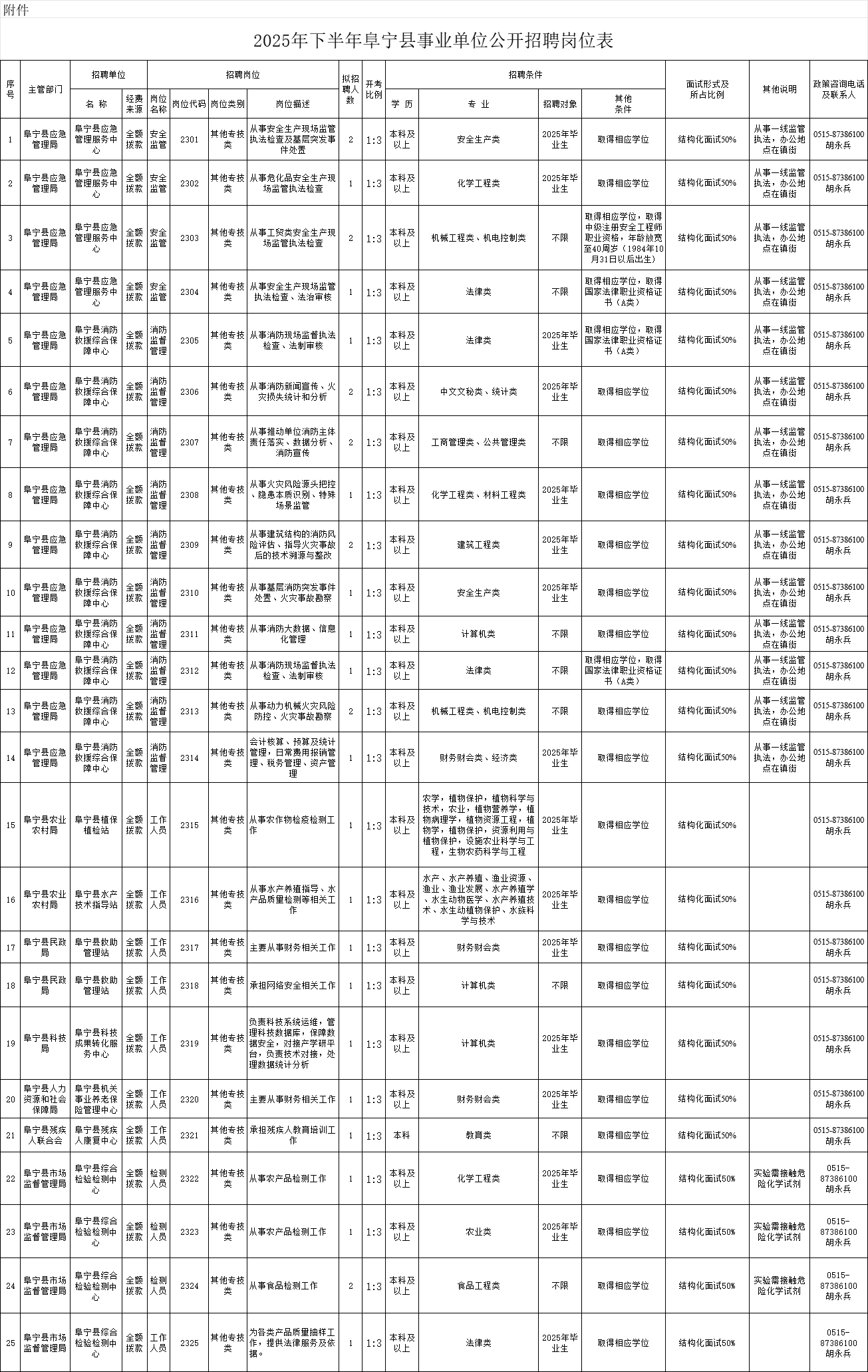 - 32人!事業(yè)編!2025年下半年阜寧縣事業(yè)單位公開招聘工作人員通告